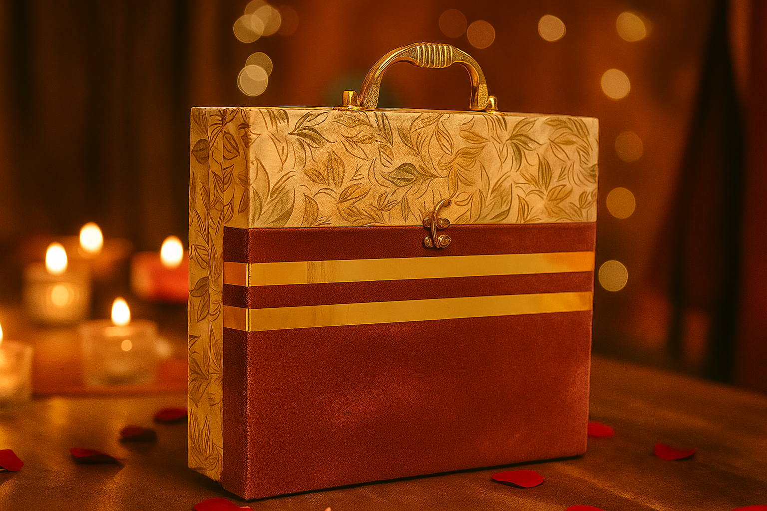 Whether for corporate gifting, festive celebrations, or personal occasions, this velvet-finished briefcase box exudes timeless grace and a statement of quality.