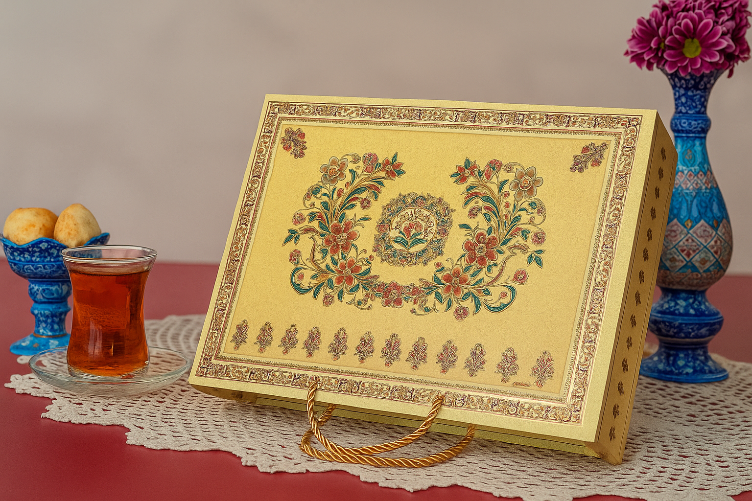 Celebrate elegance with our Regal Floral Yellow Gift Box, a masterpiece that blends tradition with luxury. The vibrant floral artwork on the lid symbolizes prosperity, joy, and festivity, making it the perfect choice for memorable occasions.